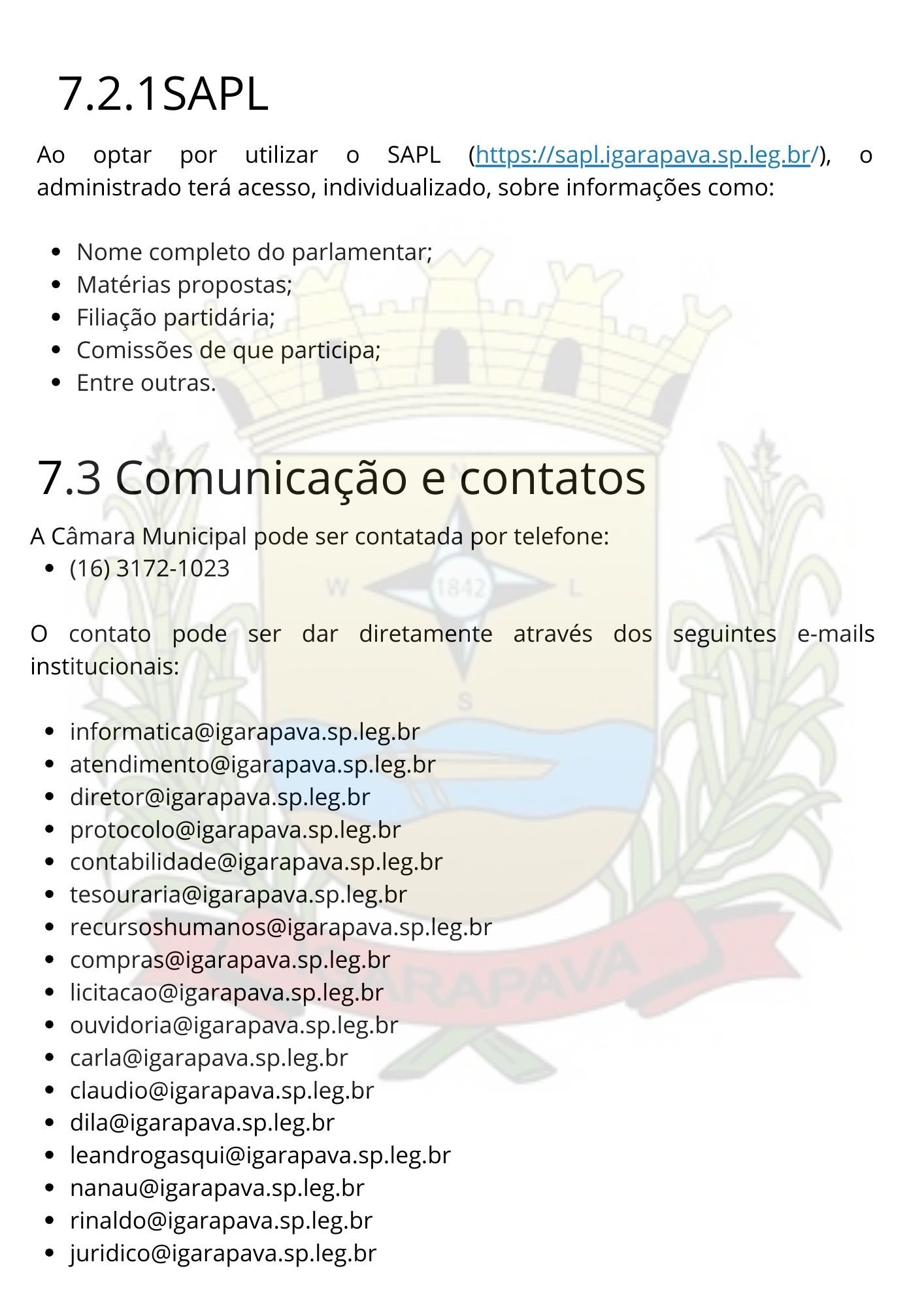 SAPL; Comunicação e Contatos